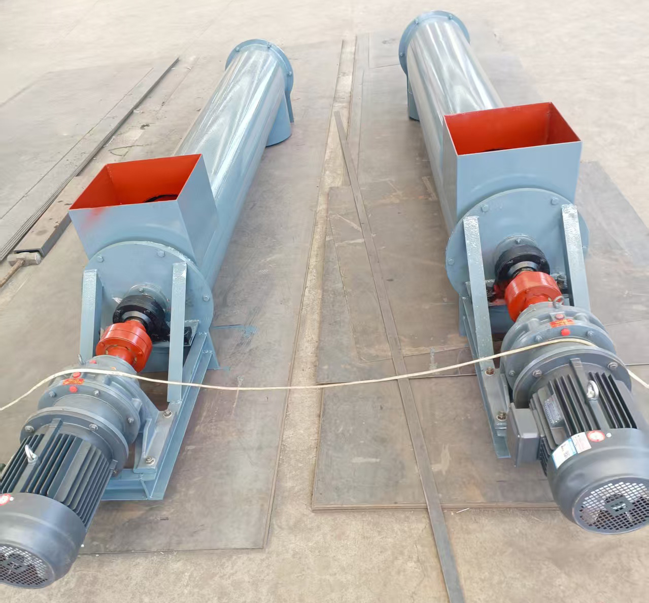 螺旋輸送機廠家供應(yīng)高品質(zhì)的螺旋輸送機。型號齊全。下面詳細介紹一下:螺旋輸送機是一種利用電機帶動螺旋回轉(zhuǎn),推移物料以實現(xiàn)輸送目的的機械。它能水平、傾斜或垂直輸送,具有結(jié)構(gòu)簡單、橫截面積小、密封性好、操作方便、維修容易、便于封閉運輸?shù)葍?yōu)點。螺旋輸送機在輸送形式上分為有軸螺旋輸送機和無軸螺旋輸送機兩種,在外型上分為U型螺旋輸送機和管式螺旋輸送機。有軸螺旋輸送機適用于無粘性的干粉物料和小顆粒物料.(例如:水泥、粉煤灰、石灰、糧等)而無軸螺旋輸送機適合輸送機由粘性的和易纏繞的物料。(例如:污泥、生物質(zhì)、垃圾等)螺旋輸送機的工作原理是旋轉(zhuǎn)的螺旋葉片將物料推移而進行螺旋輸送機輸送,使物料不與螺旋輸送機葉片一起旋轉(zhuǎn)的力是物料自身重量和螺旋輸送機機殼對物料的摩擦阻力。螺旋輸送機旋轉(zhuǎn)軸上焊的螺旋葉片,葉片的面型根據(jù)輸送物料的不同有實體面型、帶式面型、葉片面型等型式。螺旋輸送機的螺旋軸在物料運動方向的終端有止推軸承以隨物料給螺旋的軸向反力,在機長較長時,應(yīng)加中間吊掛軸承。