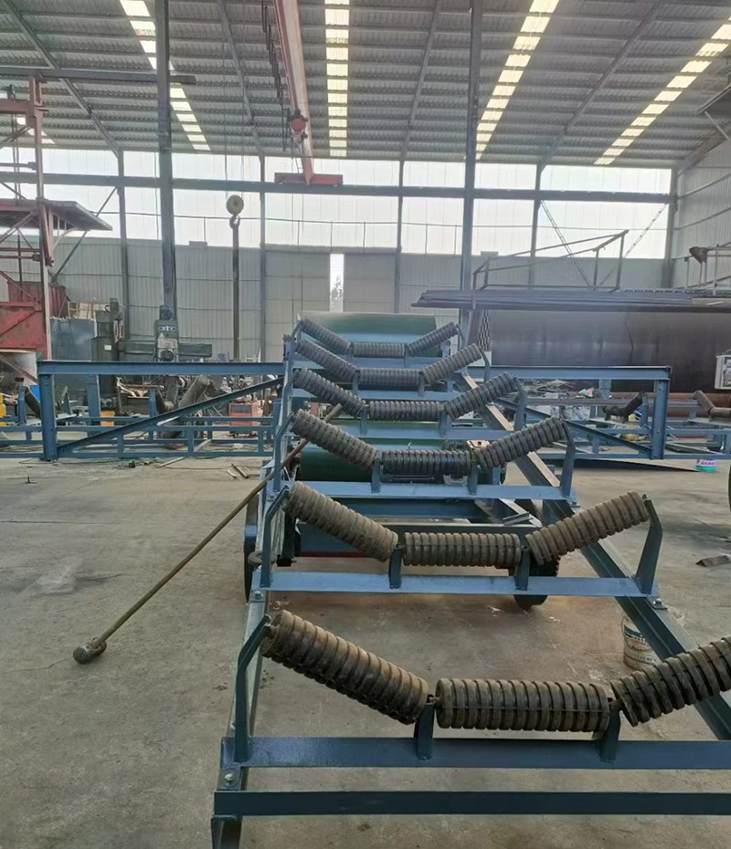 皮帶輸送機(jī)是一種摩擦驅(qū)動(dòng)以連續(xù)方式運(yùn)輸物料的機(jī)械。主要由機(jī)架、輸送帶、托輥、滾筒、張緊裝置、傳動(dòng)裝置等組成。它可以將物料在一定的輸送線上,從供料點(diǎn)到卸料點(diǎn)間形成一種物料的輸送流程。它既可以進(jìn)行碎散物料的輸送,也可以進(jìn)行成件物品的輸送。除進(jìn)行純粹的物料輸送外,還可以與各工業(yè)企業(yè)生產(chǎn)流程中的工藝過(guò)程的要求相配合,形成有節(jié)奏的流水作業(yè)運(yùn)輸線。